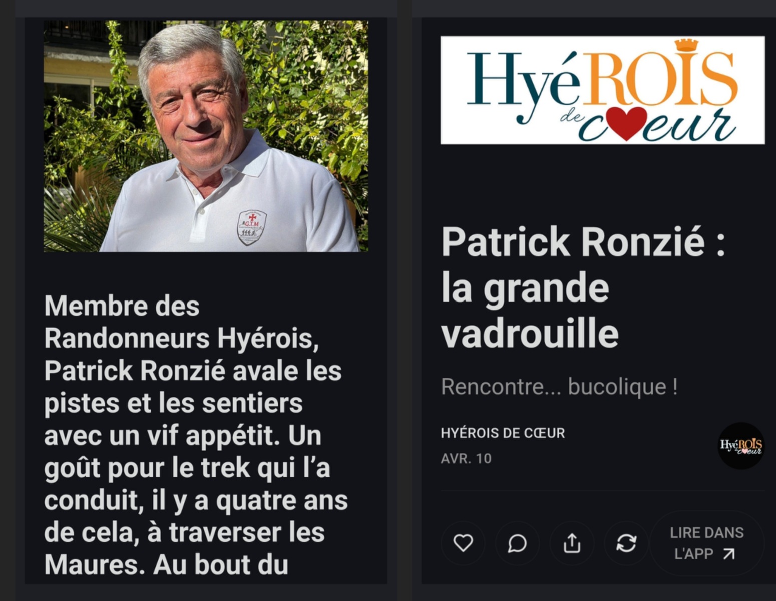 L'article retrace rapidement le pari de Patrick de faire la GTM : Grande traversée des Maures, 89 km à pied pour les retrouver à la sortie de l'école chez elles !