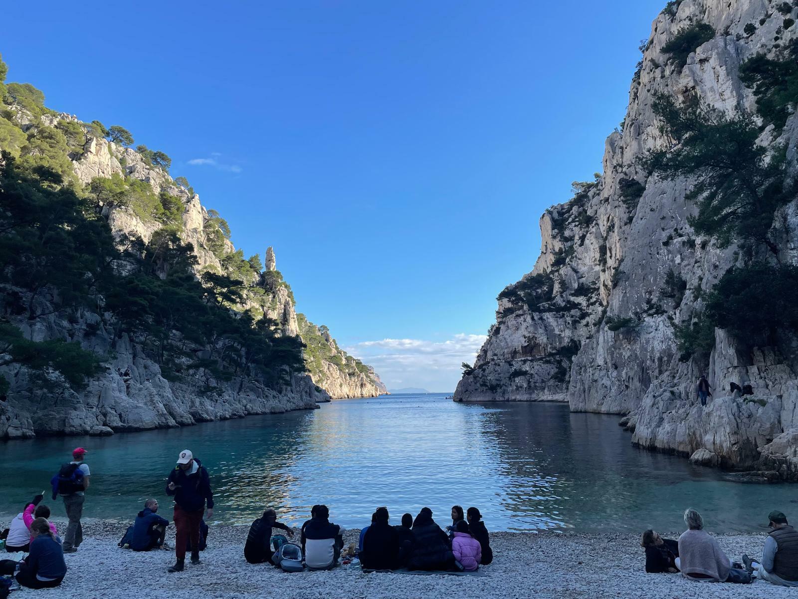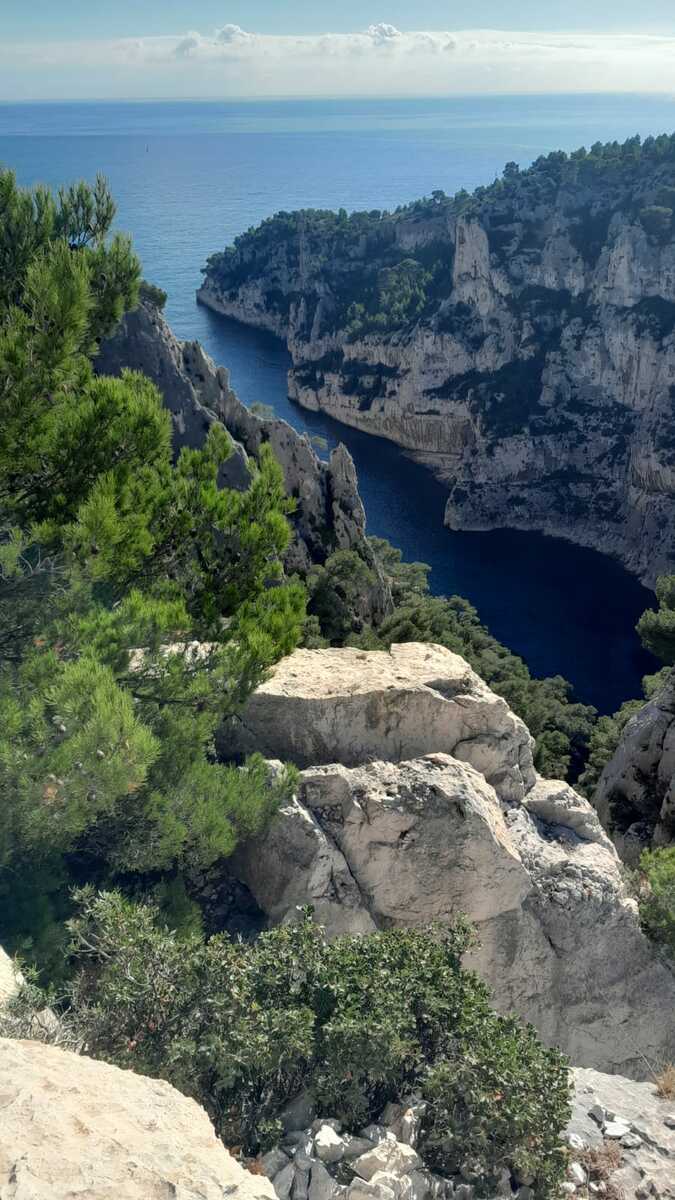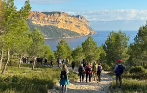 Une météo idéale pour cette randonnée dans les calanques de Cassis au départ de Port Miou. Après le tour de la presqu'ile de Cacau, la calanque de Port Pin nous avons continuer par le haut des falaises de la calanque d'En Vau. Une pause pique nique bien méritée au soleil et vue sur mer imprenable, malgré une foule des grands jours. Une belle et longue descente bien glissante et pentue pour rejoindre la calaque d'En Vau. Un sentier plus confidentiel pour rejoindre l'Auberge de Jeunesse et c'est dejà le retour vers Port Miou avec en prime une superbe vue sur les falaises couleur ocre.