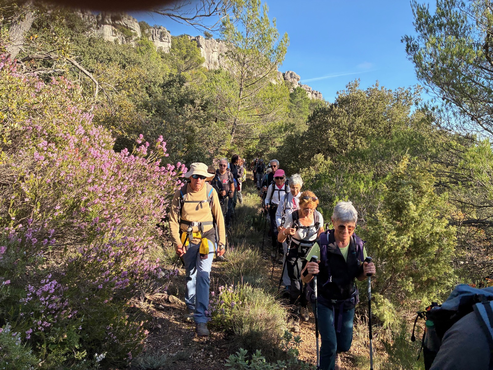 La visite de 4 anciens jas, la découverte de curiosités dolomitiques aux formes surprenantes, le passage entre les gerbes de bruyères en fleurs, ...le tout agrémenté d'un ciel bleu , laisseront de bons souvenirs aux 34 participants très en forme , agréant même et avec le sourire une variante avec 1 km supplémentaire en fin de rando