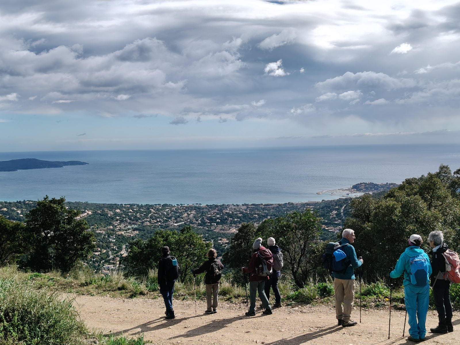 Nos 13 participantes et participants ont relevé le défi de commencer malgré ce mistral, l’ascension des collines derrière Cavalaire sur mer en direction d’un Oppidum. On en compte 260 dans tout le département du Var.