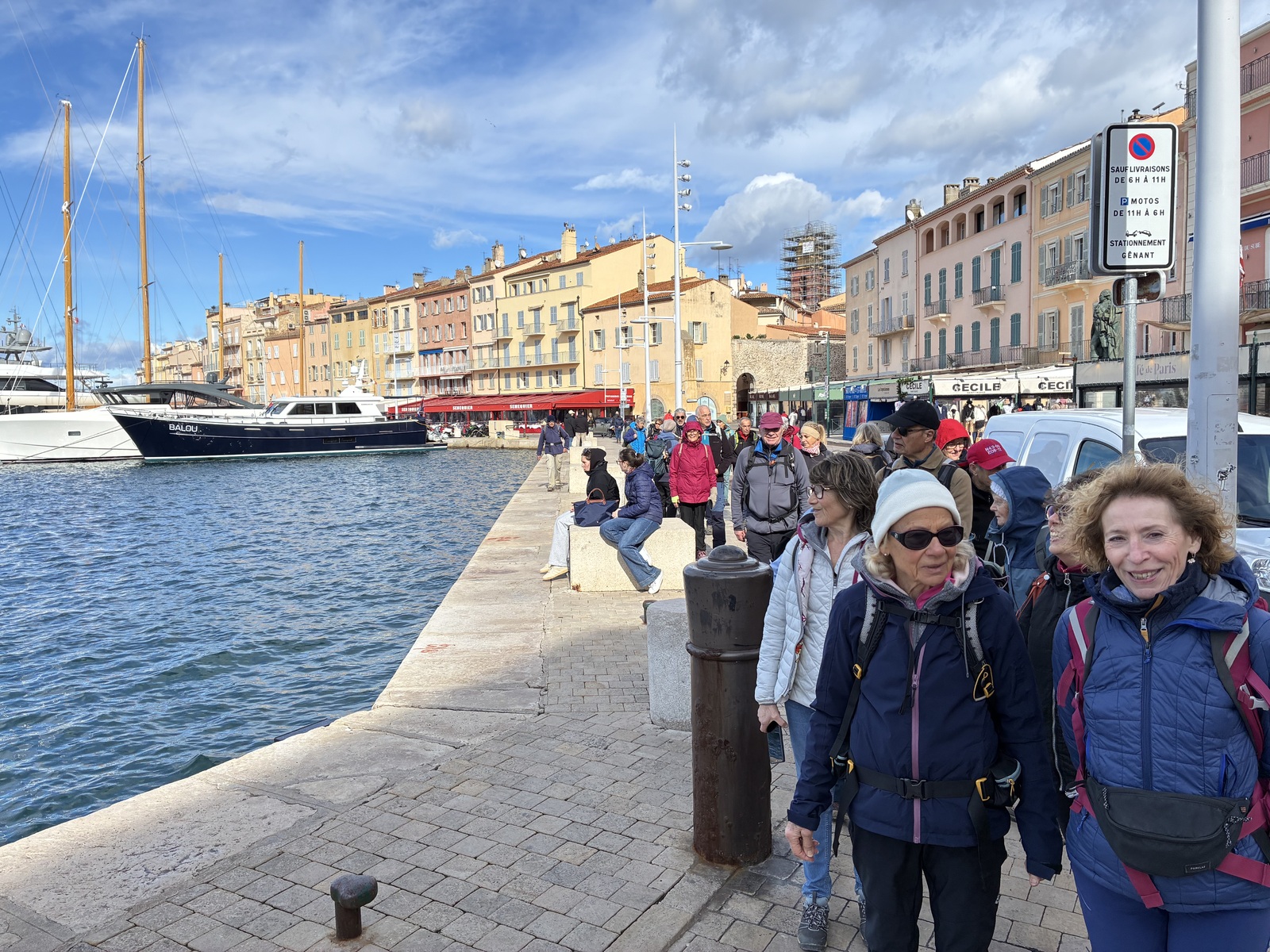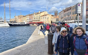 Découverte de Saint Tropez coté sentier du littoral le matin, coté ville l'après midi , pour 27 participants , avec quelques suggestions liées à un pique nique avec "vol-au-vent " au menu, un sentier imprticable et interdit sur 100m entrainant un détour sur trottoir, un passage T4 nécessitant l'aide de Alain , Louis et Suzanne que je remercie , et des boutiques fermées au grand "désespoir" de certaines .