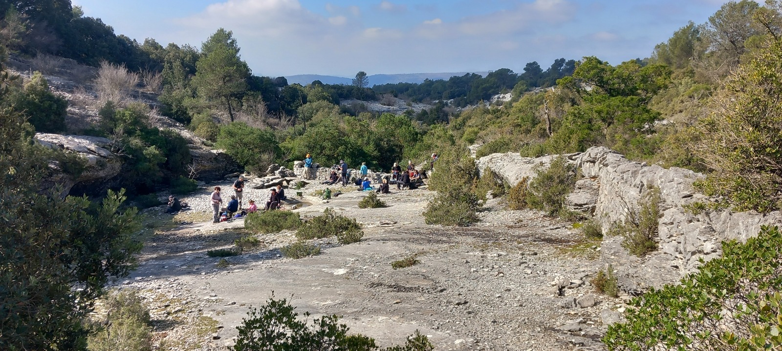 Après un passage un peu « sport » sur un lapiaz, les 24 participants ont pu découvrir l’étonnant impluvium d’Orves pour y pique-niquer, puis une vue plongeante sur l’immense carrière de Fiéraquet, une cabane de chasse « ouverte à tous » et une ancienne carrière de pierre.