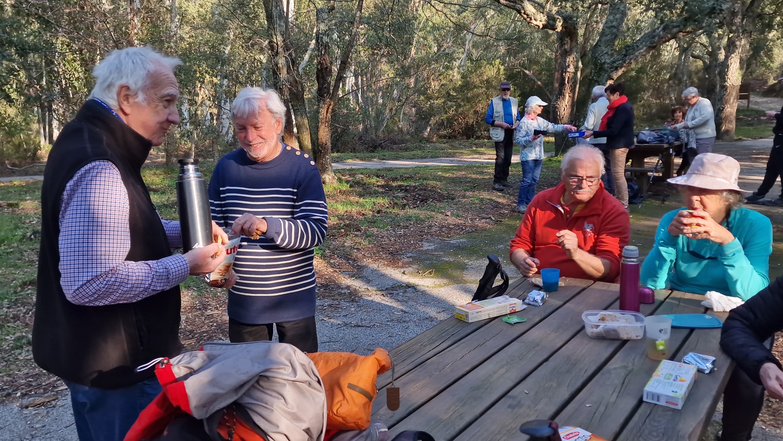 Bonne humeur toujours au programme et pause-café-thé-biscuits sur une aire de pique-nique totalement rénovée.
