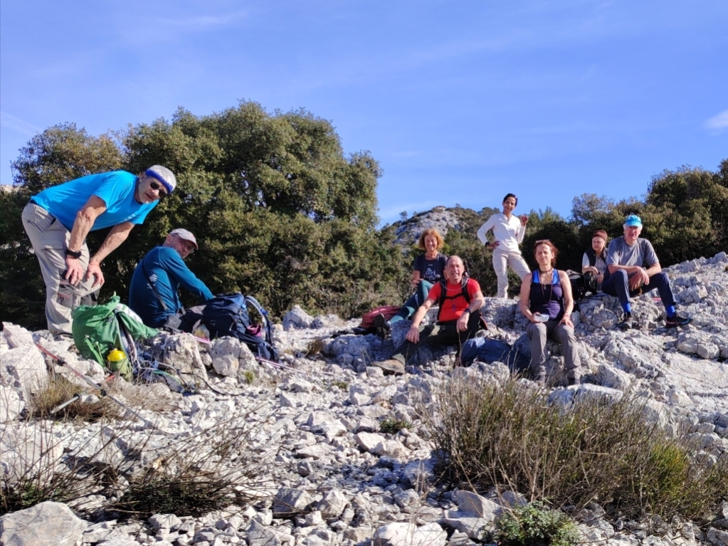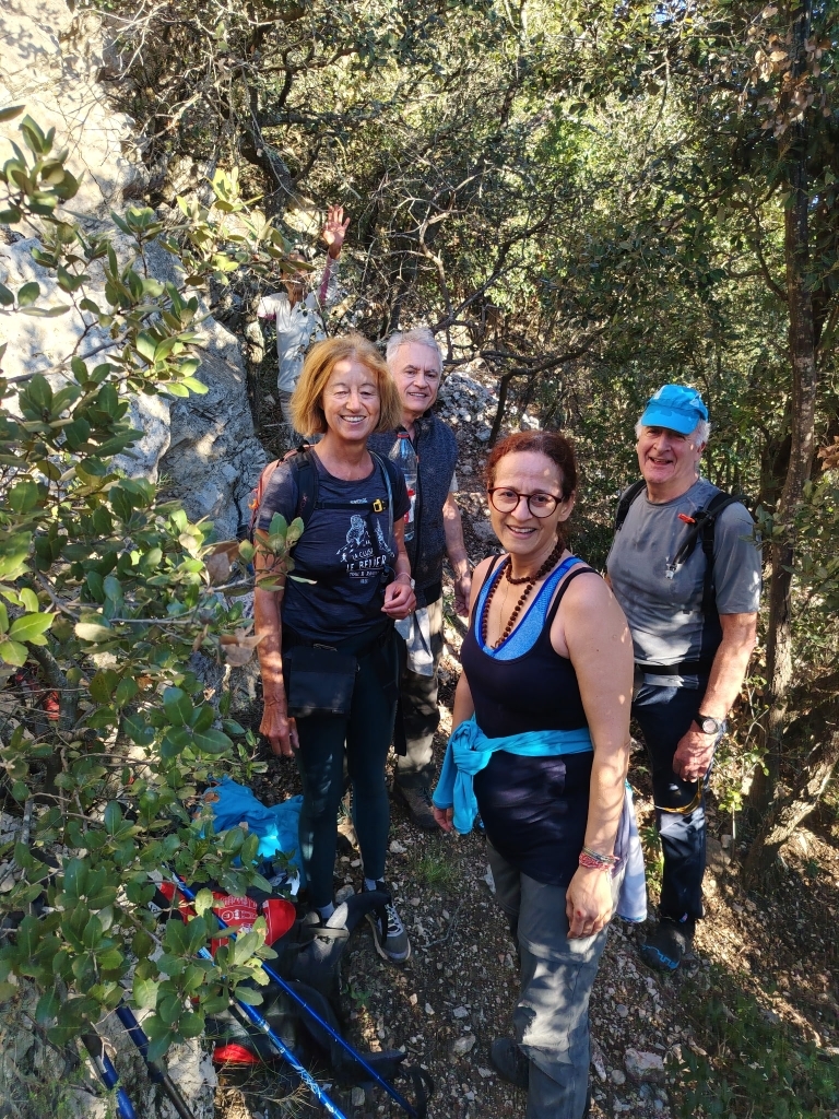 Ce fut effectivement une journée physique, voire très physique avec une descente ardue sous la falaise du Coudon puis une remontée inédite dans une cheminée où nous n’avons croisé qu’une seule chèvre.