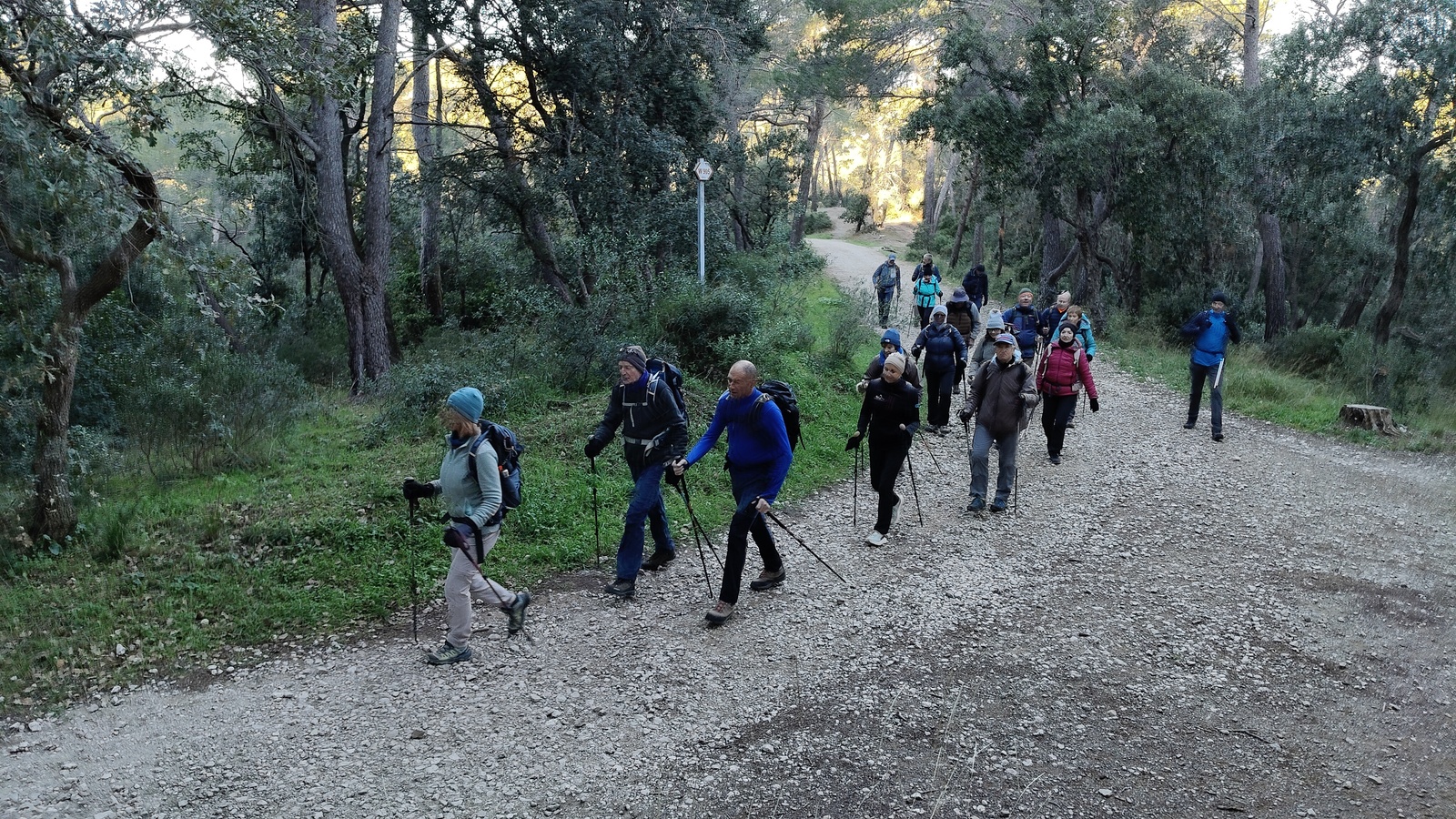 Il ne faisait pas très chaud ce matin en foret de Janas avant de partir à l’assaut de la batterie de Peyras pour nos 19 participants.