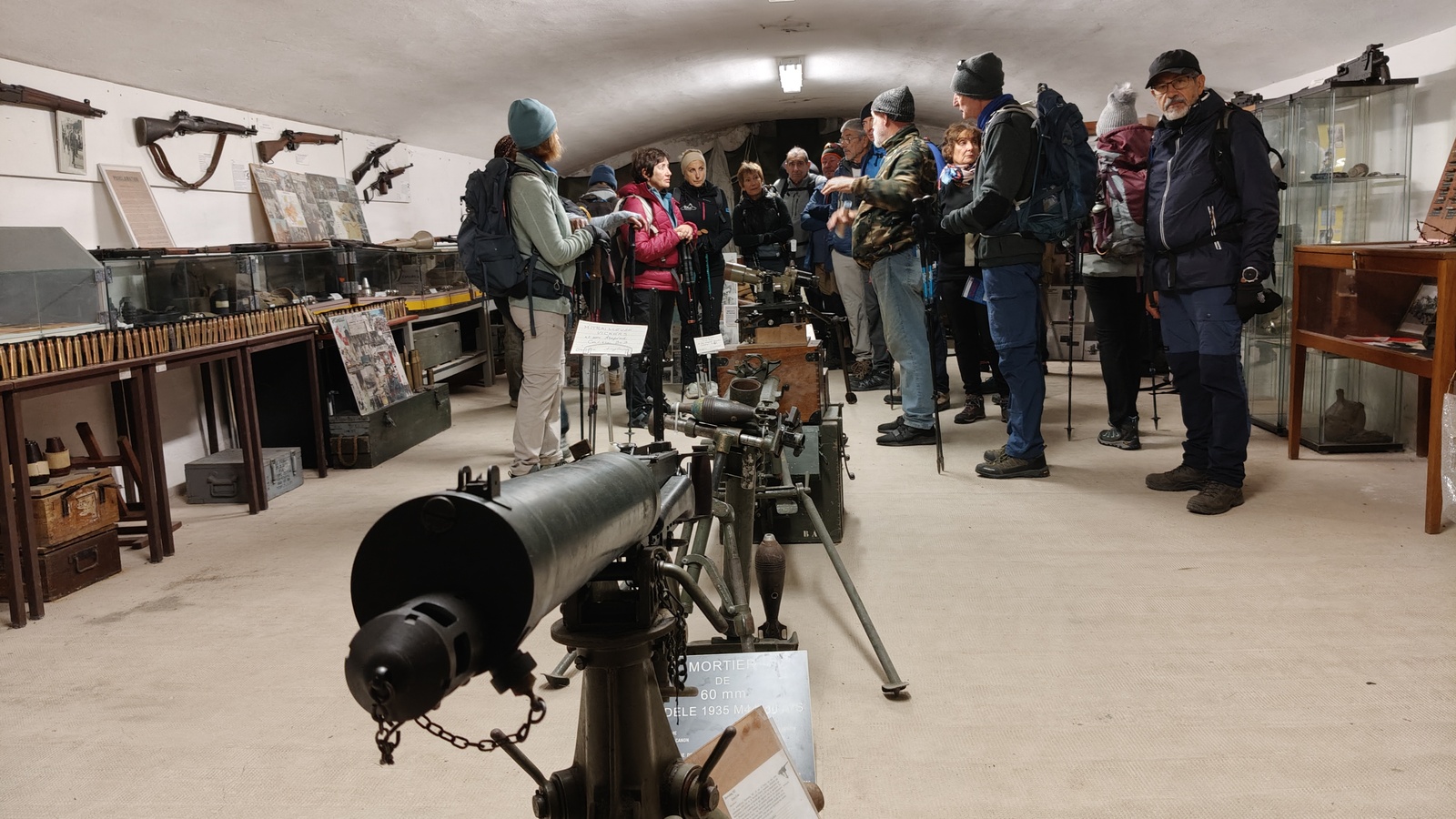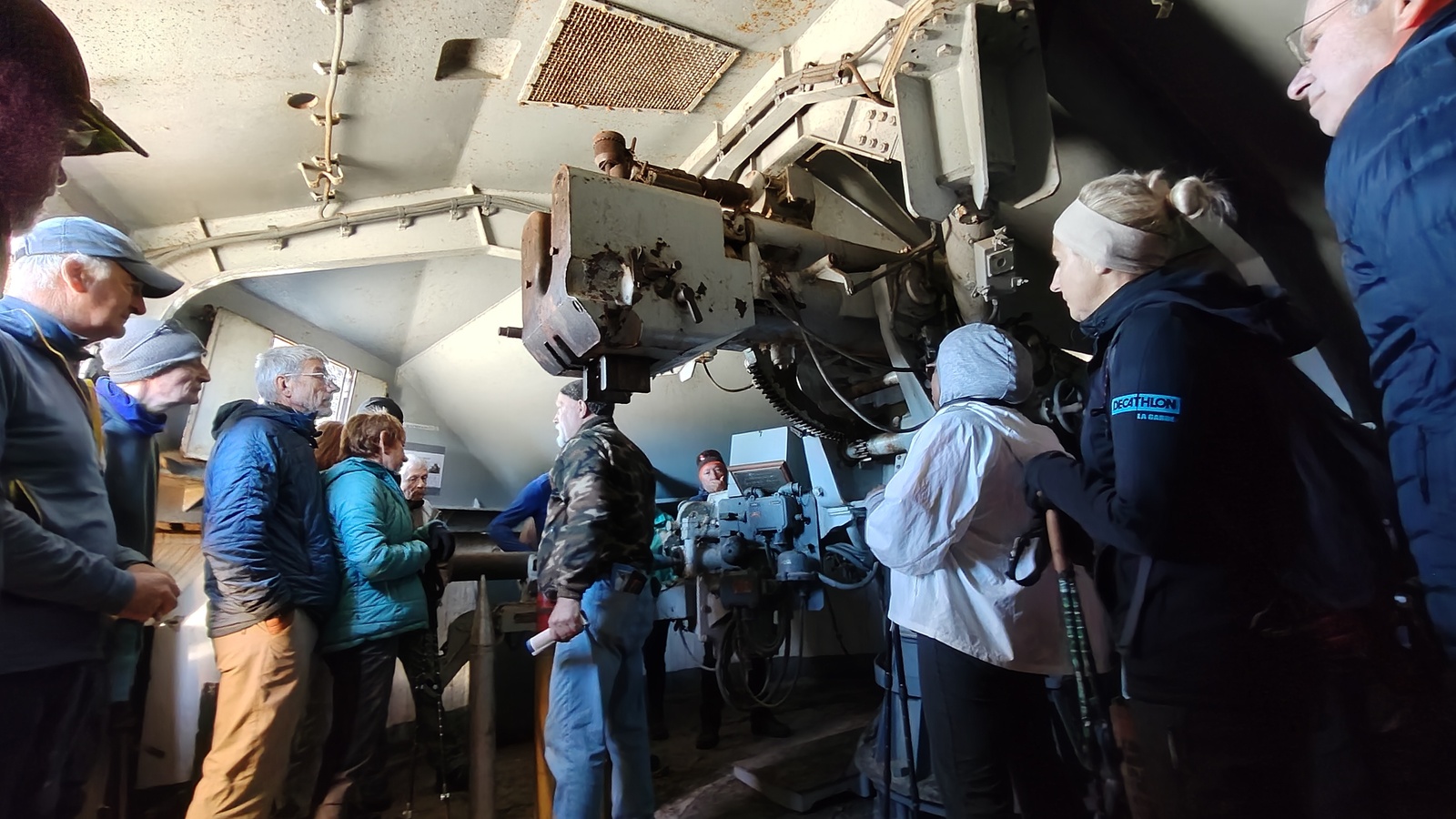Nous visiterons successivement, une salle marine, la poudrière, une salle d’armes, une batterie côtière blindée constituée d’un canons allemand (105 mm) associé à un télémètre optique l’ensemble de la 2 GM.
