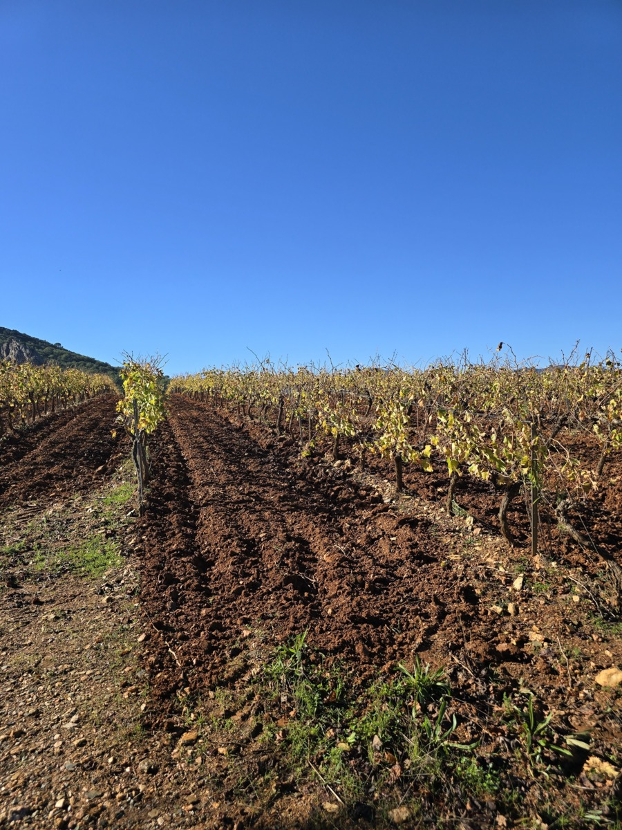 Mais bientôt, il fallait redescendre côté Nord par de nombreux petits sentiers pour déboucher sur de beaux champs de vignes rougeoyants que nous avons longé pour arriver jusqu’à nos voitures.