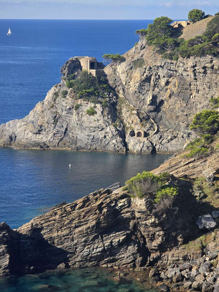 Dès les premiers mètres, le sentier offrait de superbes points de vue sur la mer, entre criques discrètes et rochers sculptés par la mer, les fortins abandonnés. Les pins parasols apportaient une ombre bienvenue sur certaines portions exposées du côté de l'Escampo-Barriou.