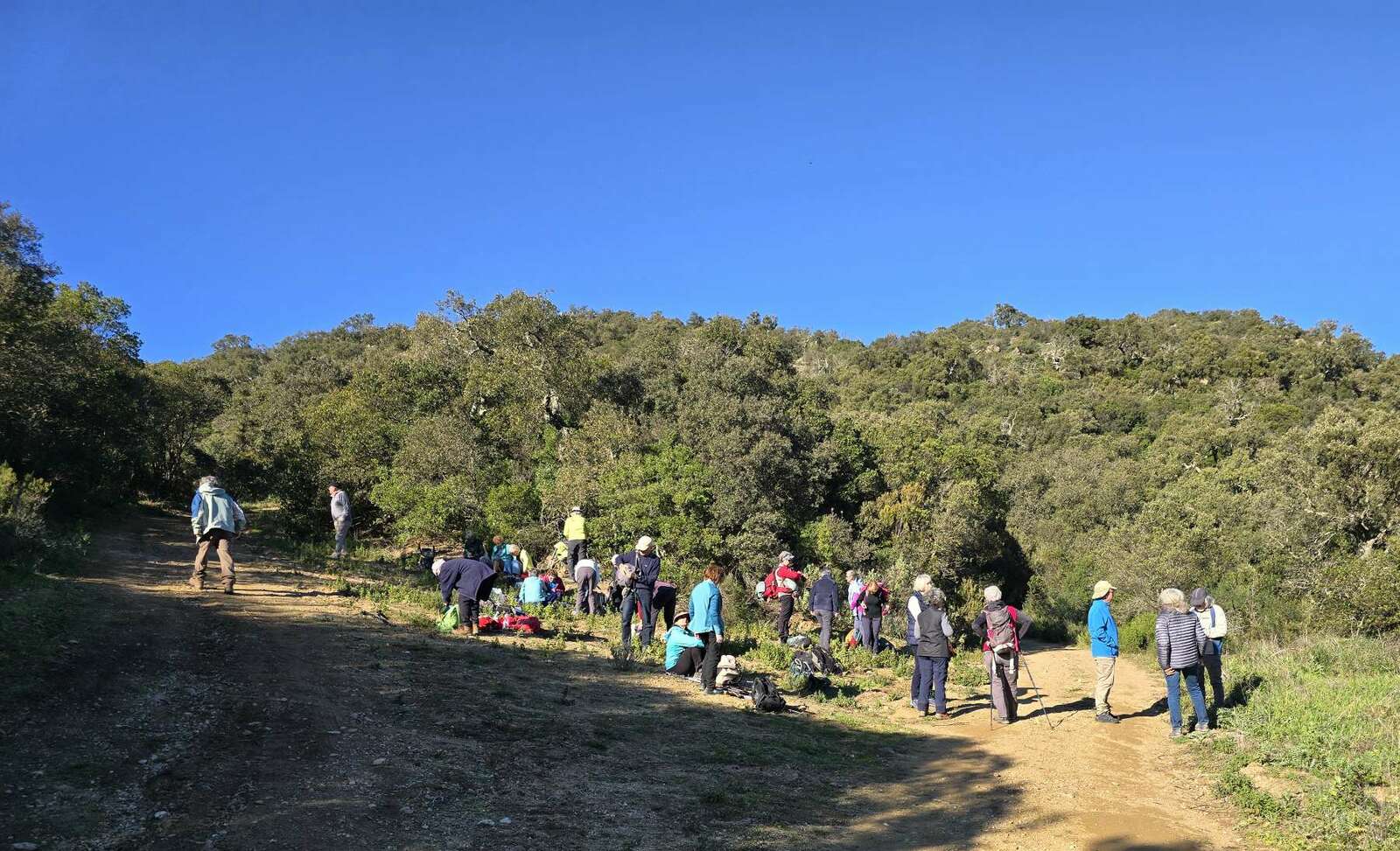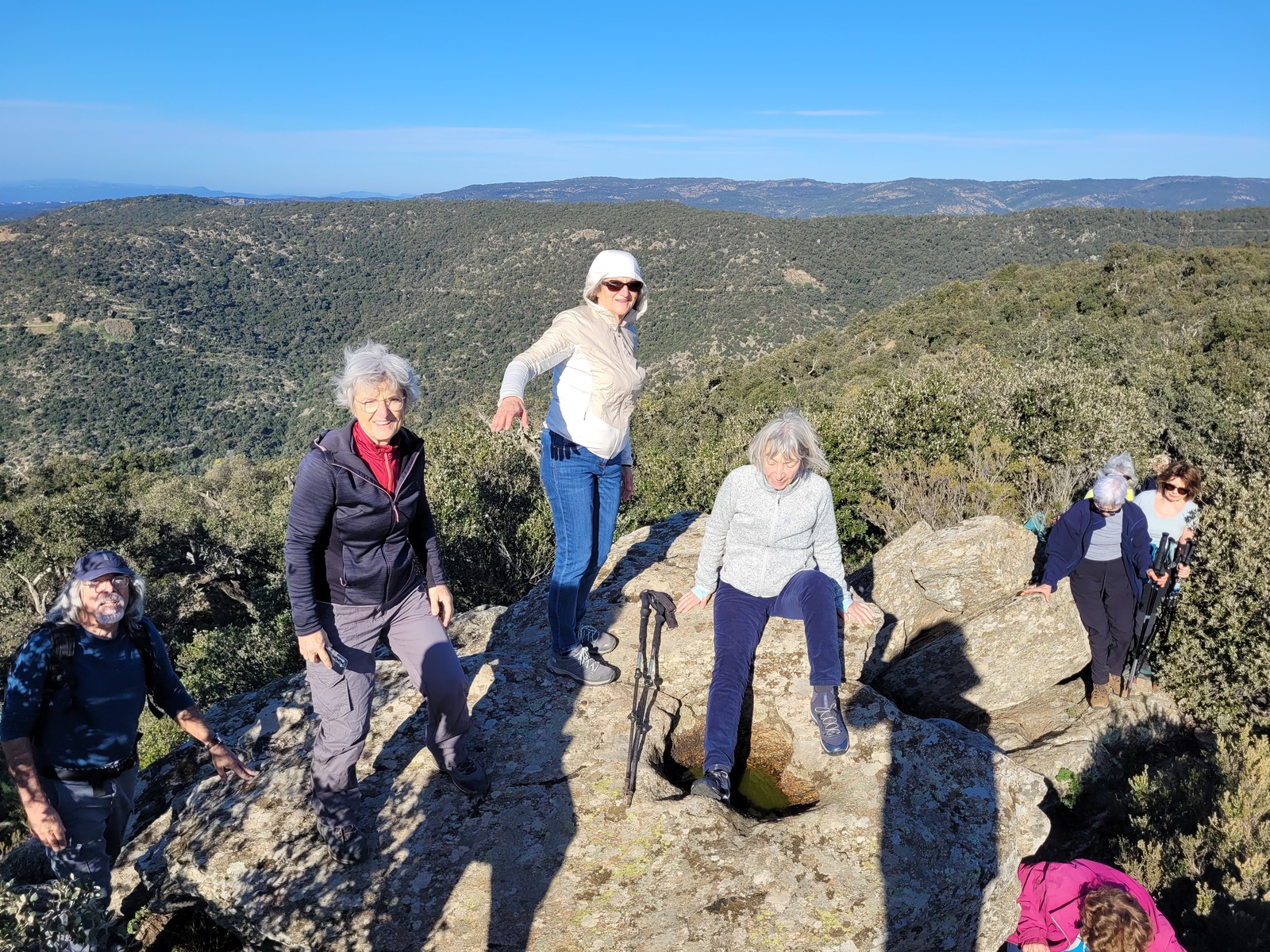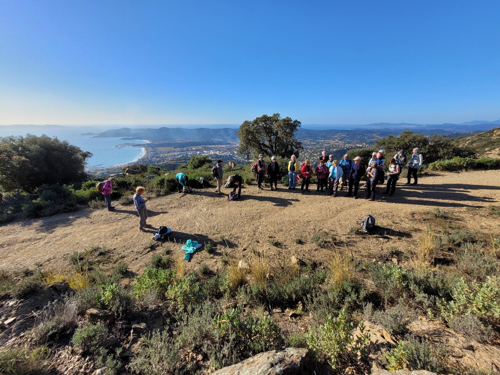 Malgré le froid matinal, nous nous sommes retrouvés à 26 sur les hauteurs du Lavandou pour grimper jusqu'à la route des Crêtes, la Pierre d'Avenon, et le col du Landon. Le froid n'a pas duré, la montée nous réchauffant vite, et le pique-nique sur un espace ensoleillé au col du Landon a été des plus sympathiques.