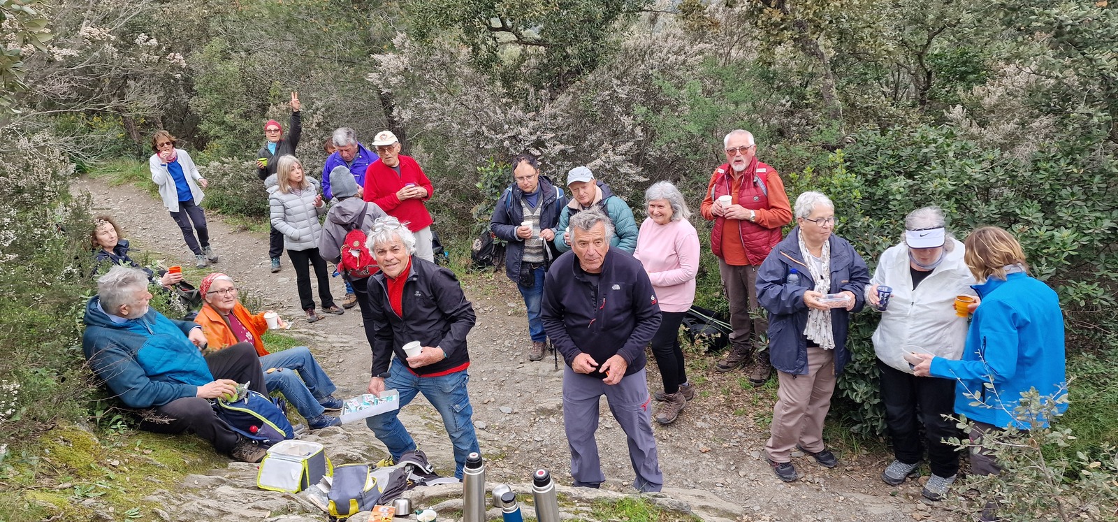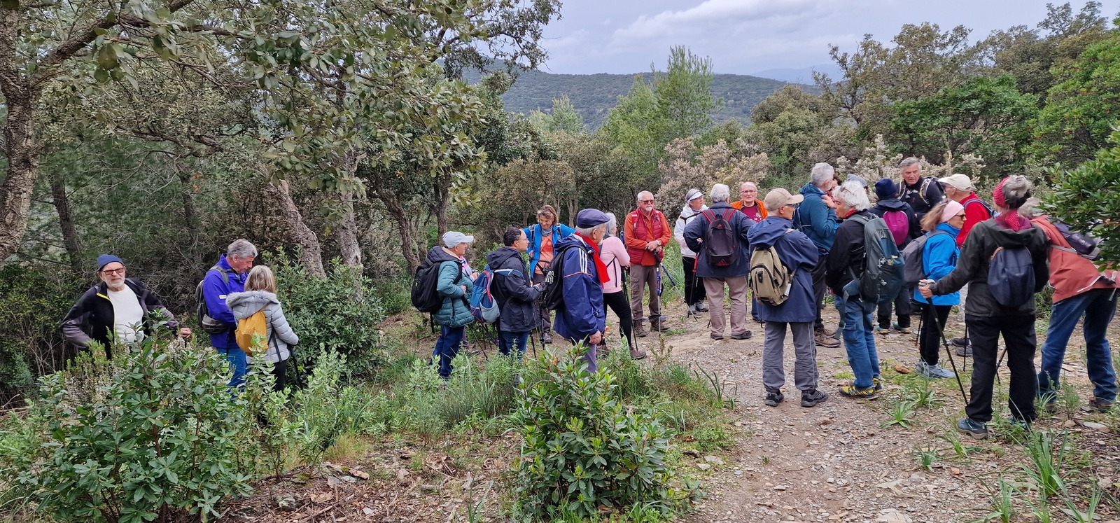 En ce 2ème jour du printemps et juste avant que la pluie n'arrive, avec des nuages et du vent d'Est nous étions 27 menés par Pierre sur les sentiers en haut de la colline de Hyères, à l'abri du vent derrière la crête. Nous étions heureux de prendre un bon bol d'air et partager le traditionnel thé-café-biscuits bien à l'abri. Merci Pierre. N'oubliez pas de cliquer sur le lien suivant pour visualiser le parcours animé Relive : https://www.relive.com/view/vQvxWZmwGBq