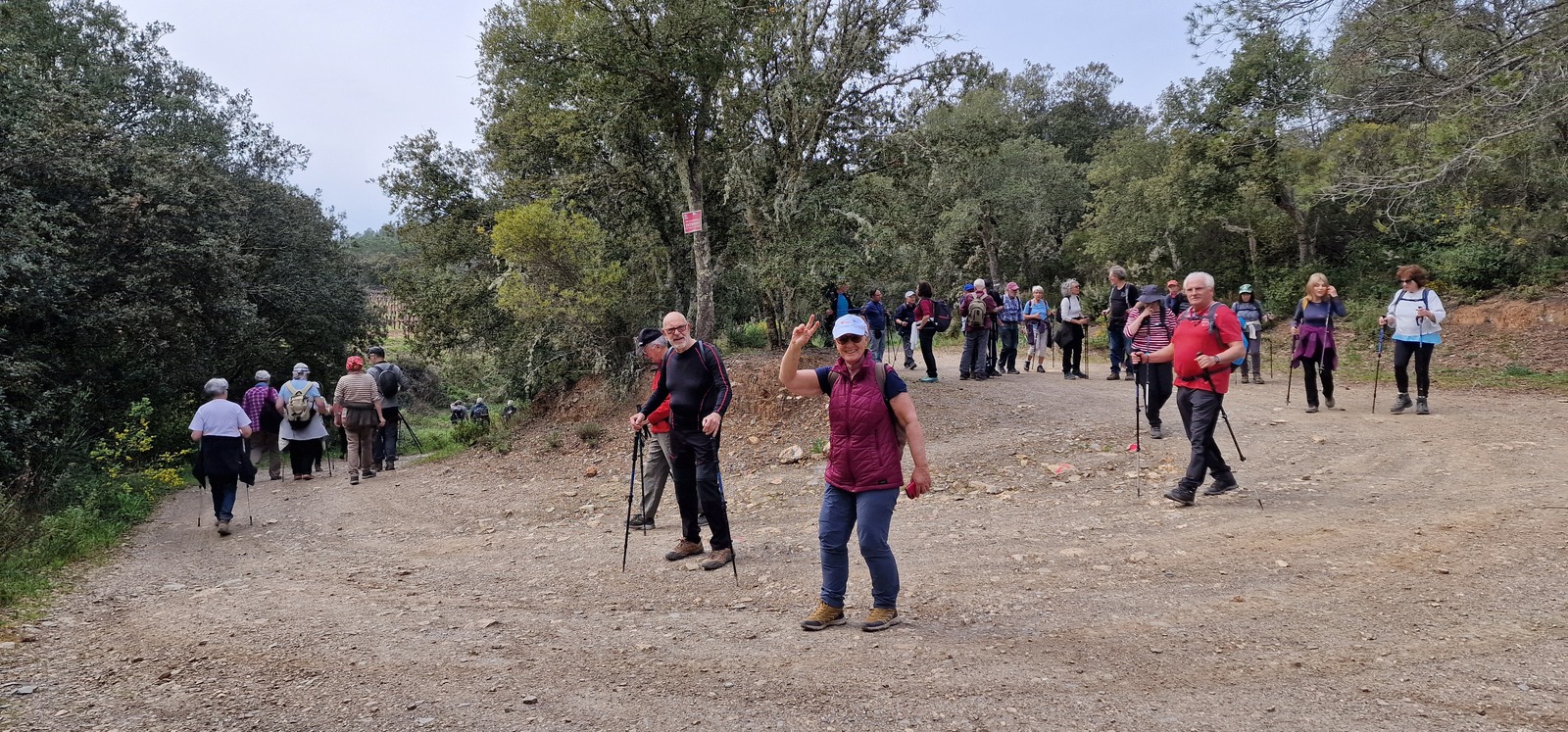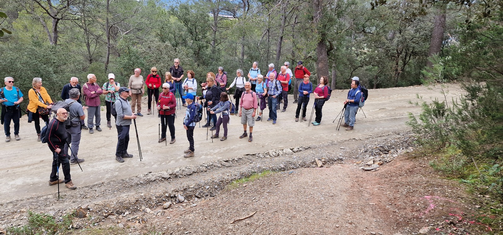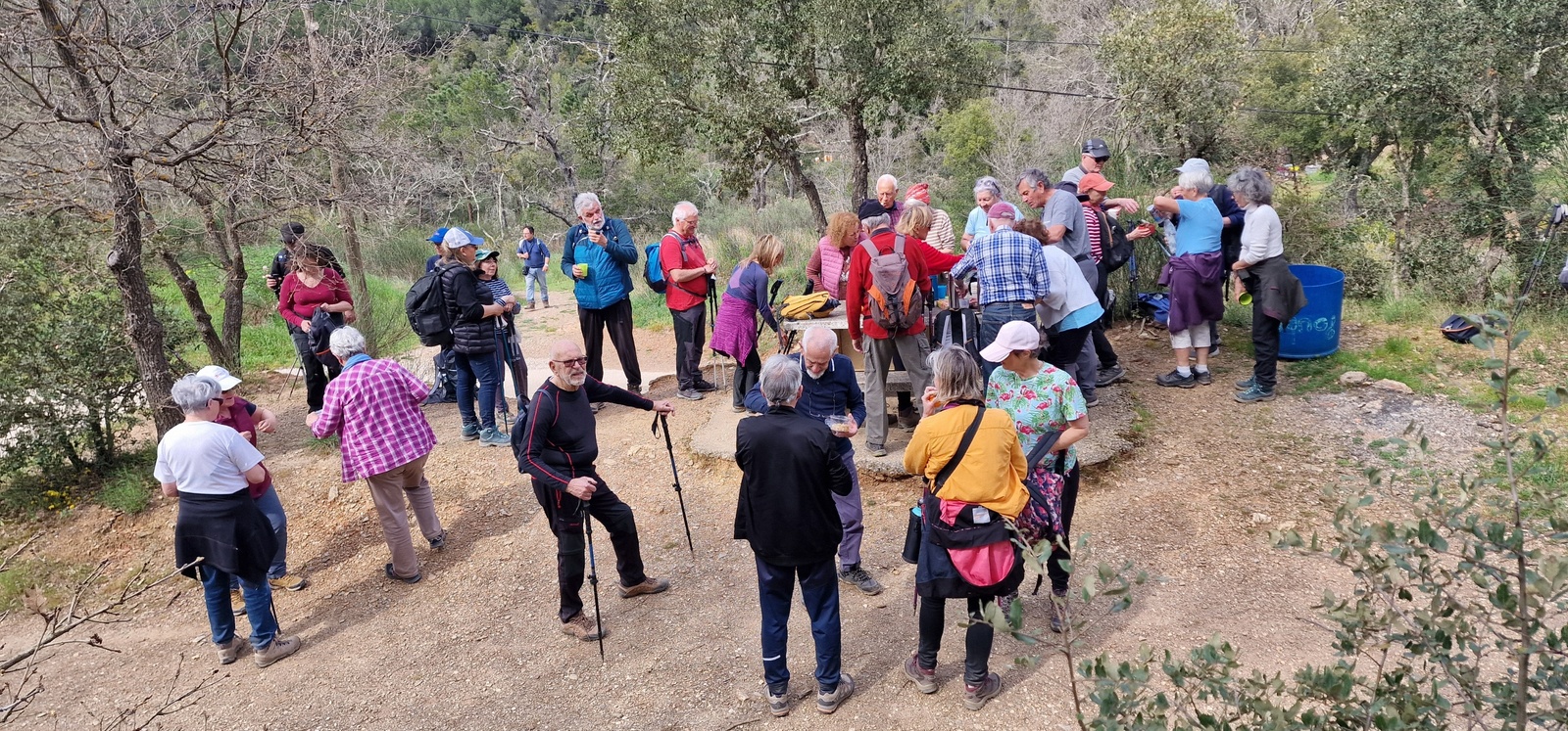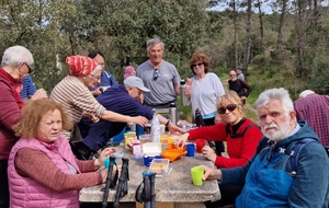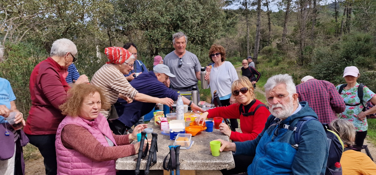 Rien que 35 randonneurs en cette après-midi ensoleillée, menés par Pierre, assisté de 4 serre-files, quand même ! … pour une promenade de santé, mais quand même avec une bonne grimpette dans les sentiers, chemins et pistes, autour de Belle Lame. Avec une halte pas loin du Ruisseau du Traversier autour d'une table en pierre pour déguster le traditionnel thé-café-biscuits offert par Pierre.