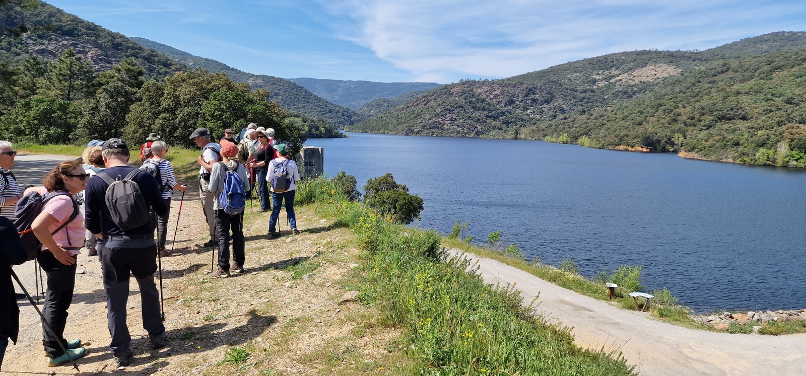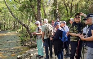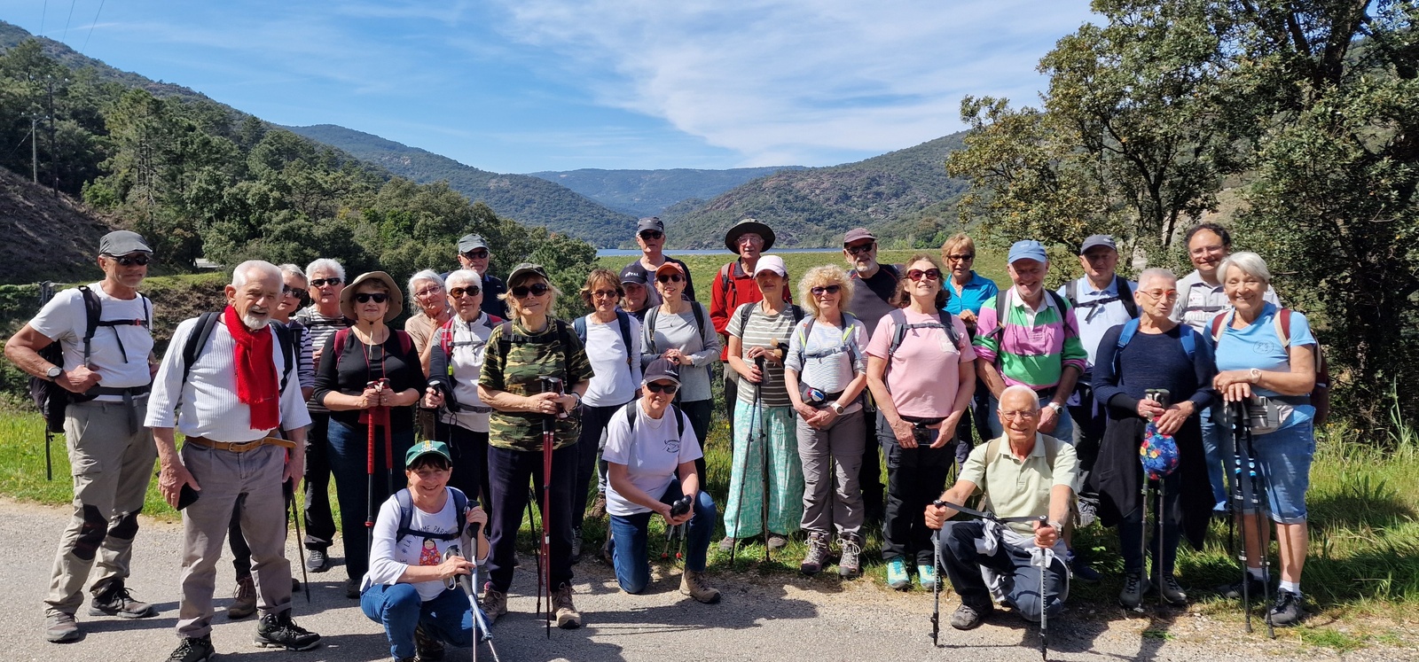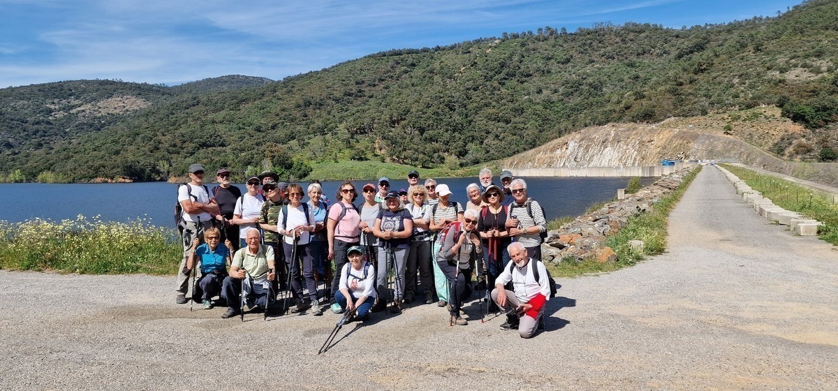 Nous étions 29 randonneurs menés par Alain pour une randonnée inédite pour presque tous. Par une route réservée d'environ 3 km, nous avons découvert le barrage de la Verne où nous avons dégusté le traditionnel thé-café-biscuits offert par Alain. Nous n'avons pas pu traverser la Verne comme prévu car il y avait trop d'eau ! …, mais un sentier nous a permis victorieusement de la longer !!!… Merci pour cette belle découverte.