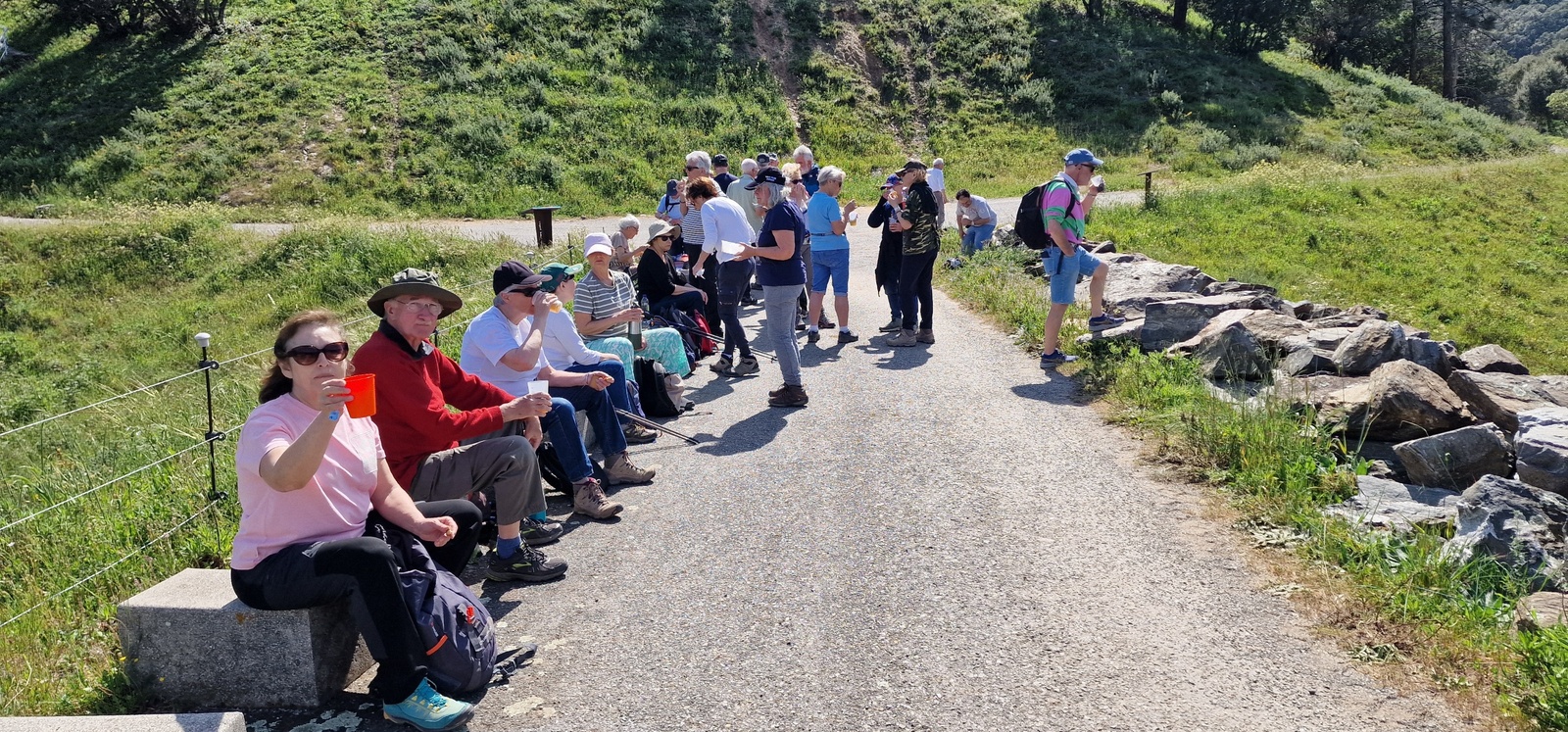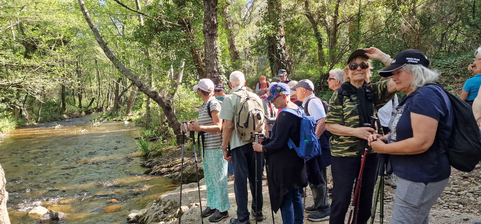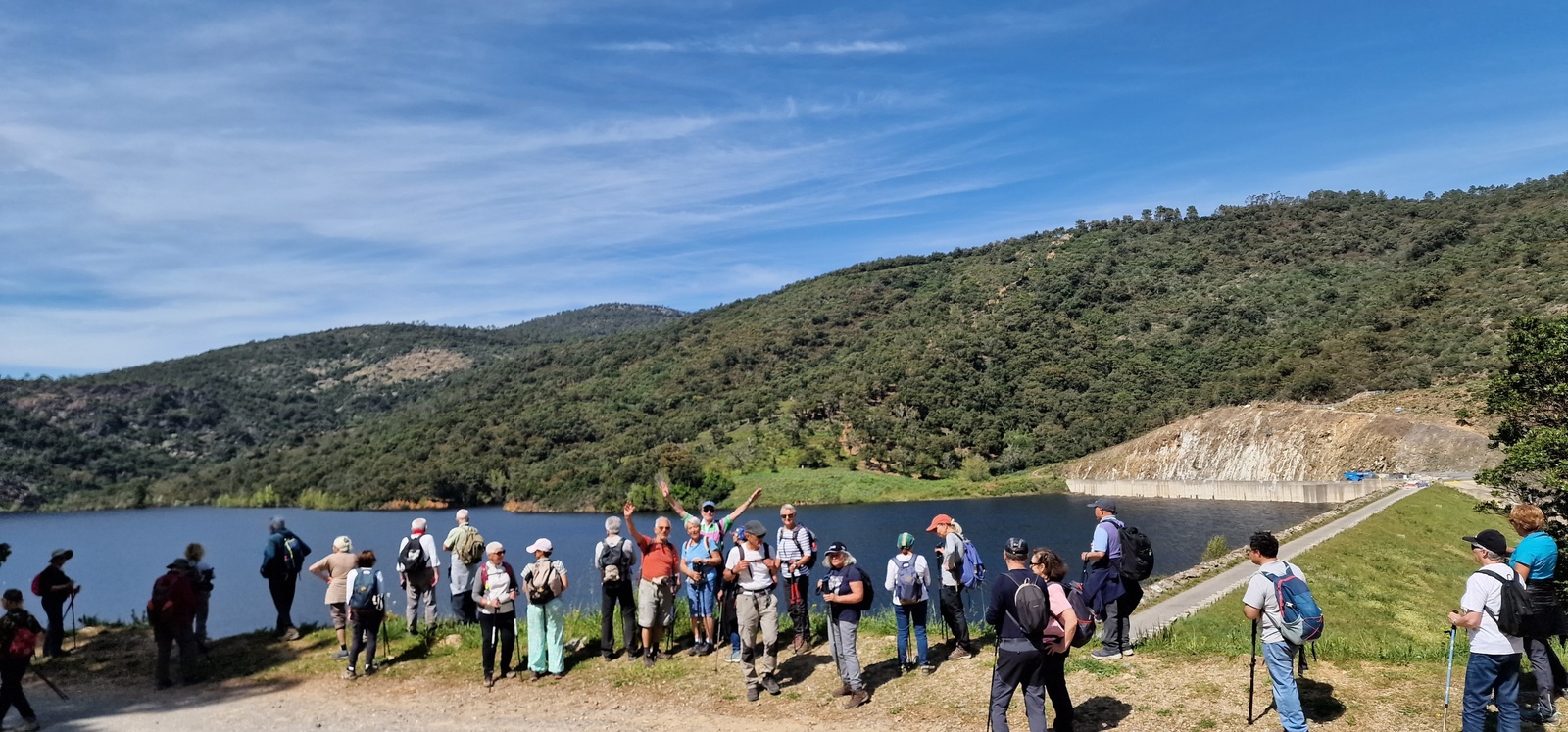 Nous étions 29 randonneurs menés par Alain pour une randonnée inédite pour presque tous. Par une route réservée d'environ 3 km, nous avons découvert le barrage de la Verne où nous avons dégusté le traditionnel thé-café-biscuits offert par Alain. Nous n'avons pas pu traverser la Verne comme prévu car il y avait trop d'eau ! …, mais un sentier nous a permis victorieusement de la longer !!!… Merci pour cette belle découverte.