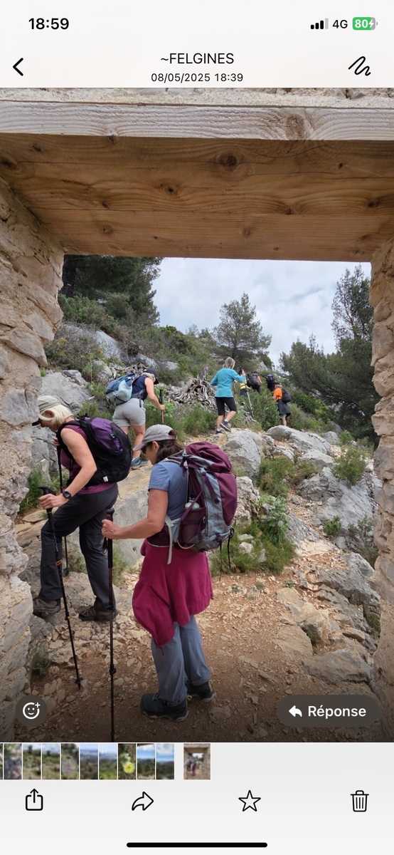Belle randonnée partant du col de garde par un chemin en sous bois et arrivant sur les hauteurs d Ollioules passant par l oppidum et le télégraphe de Chappe. Suivant les crêtes pour revenir au col de Garde. Bon groupe malgré une chute de Monica sans gravité.Alors Nicole on oublie son sac à dos ! Voir dernière photo