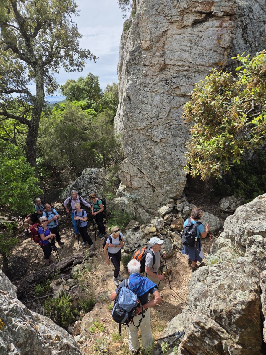 Ce jeudi, les 20 randonneurs ayant fait le pari de la météo ont été récompensés de ce choix judicieux. Le ciel un peu maussade présent au départ a rapidement laissé la place à une douceur printanière accompagnant le groupe au fil du Vallon de Tamary. L’accès aux rochers de Comtadou a permis au serre-file, Marc G., de recompter les participants et de vérifier qu’aucun ne manquait. Après le pique-nique sur la terrasse de Comtadou, le retour, privilégiant les sentiers en sous-bois en protection du soleil bien présent, a mené le groupe au Dolmen de Gaoutabry avant le retour au point de départ. Hubert P.