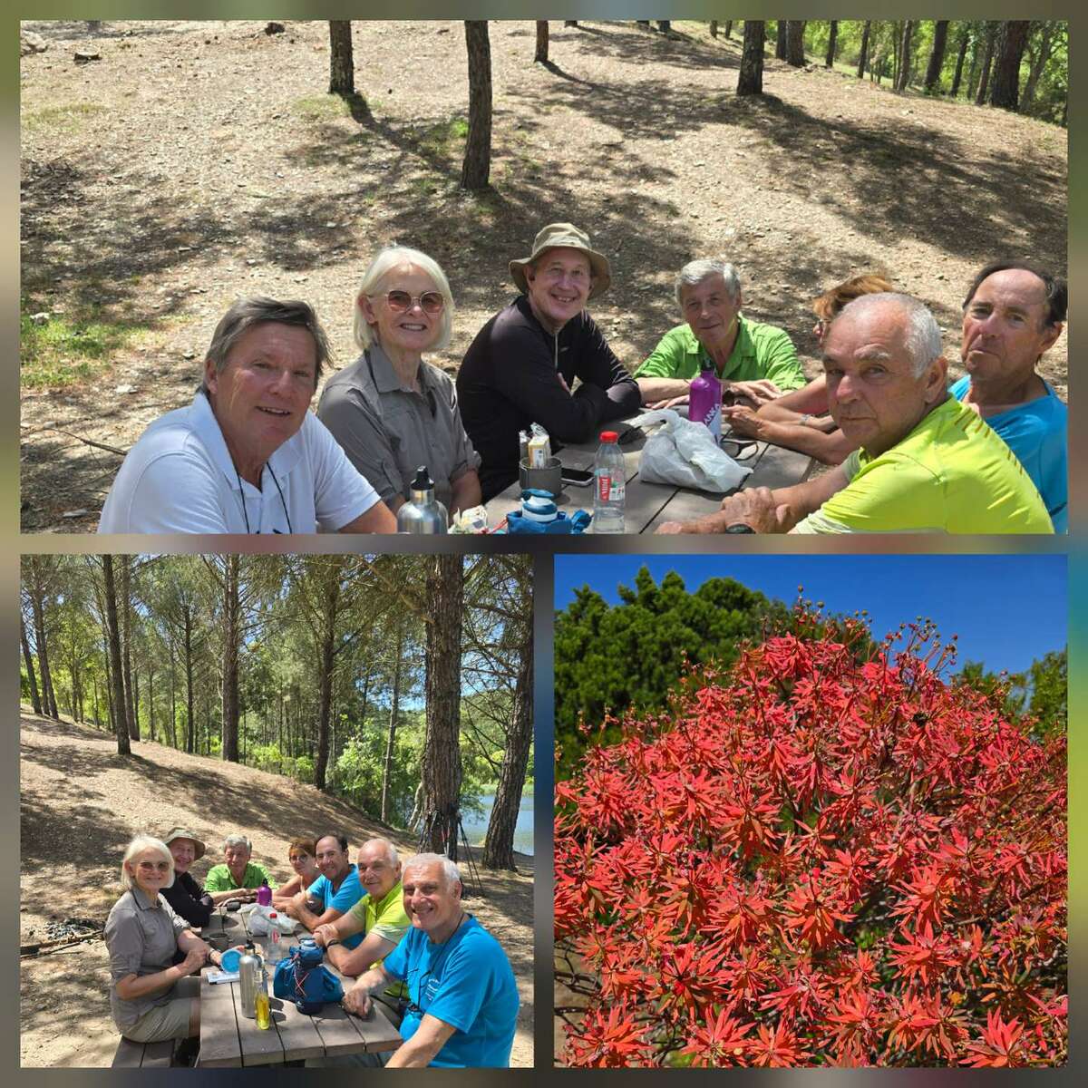 Là, à l'ombre des arbres, au bord de l'eau , nous avons déballé nos pique-niques. L'ambiance était chaleureuse et détendue. Le chemin du retour, plus ombragé, nous a d'abord menés vers la cabane des chasseurs. Ensuite, un sentier sinueux serpentant à travers le maquis, au pied du massif du Crapaud, nous a progressivement ramenés à nos véhicules.
