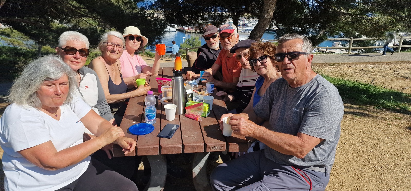 Une rando santé sans thé n'est pas une rando santé !!!… entre la statue de l'athlète nu " l'oiseau de l'âme " , le port et la plage de Bormes, nous étions 10 autour d'une table pour s'attarder à partager thé, café, biscuits, avec un temps estival, après être allés jusqu'au port du Lavandou, retour par la piste cyclable et le village, et son jardin éphémère. Voilà, belle après-midi tranquille et ensoleillée. Merci Pierre. Ci-joint le lien pour le parcours animé Relive avec photos et vidéos : https://www.relive.com/view/vPv4Zd7BP36