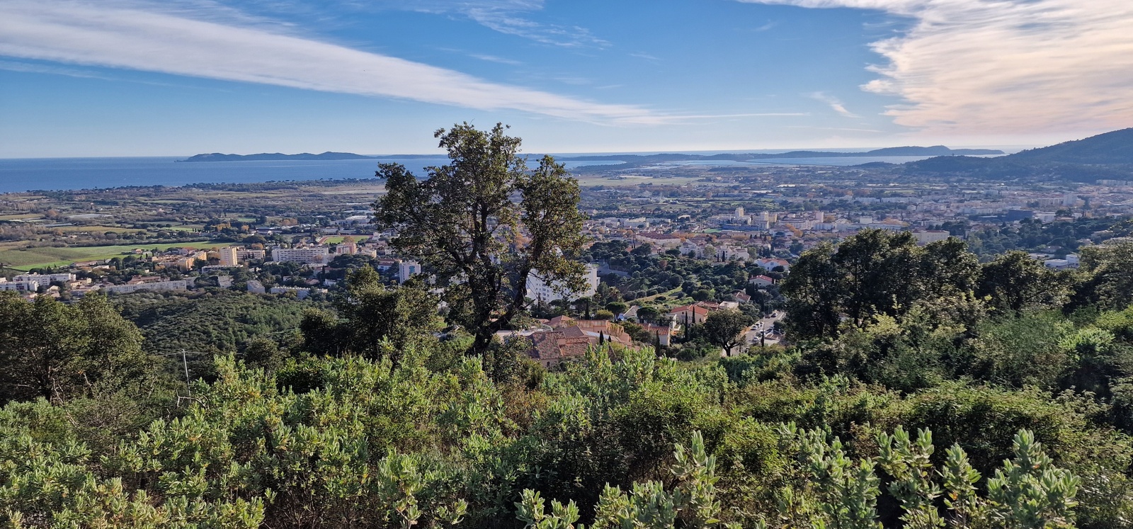 Belle balade sur la colline du Mont Soleil, avec du soleil, pas de vent, et bien sûr un panorama magnifique sur les îles d'Or.