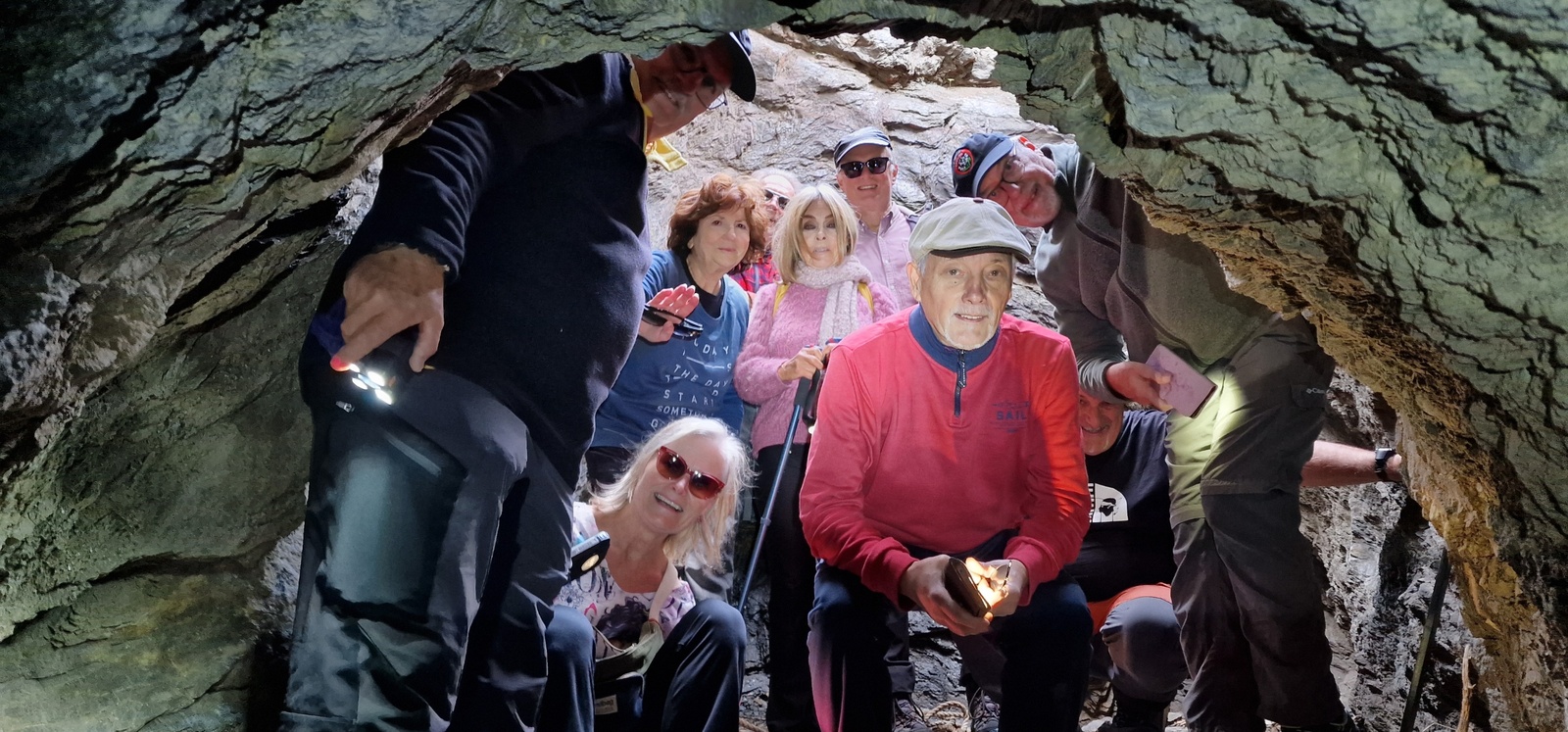 Belle coïncidence cette rando santé tombe sur les terres de Pierre P pour sa reprise après convalescence, avec pas moins de 39 participants !!!… Elle a fini par une exploration historique, non prescrite par le médecin, dans une grotte du Golf Hôtel du temps de la dernière guerre.