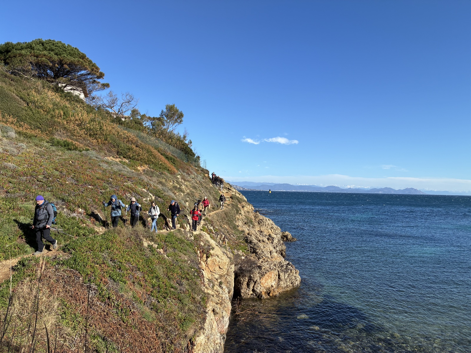 Découverte de Saint Tropez coté sentier du littoral le matin, coté ville l'après midi , pour 27 participants , avec quelques suggestions liées à un pique nique avec "vol-au-vent " au menu, un sentier imprticable et interdit sur 100m entrainant un détour sur trottoir, un passage T4 nécessitant l'aide de Alain , Louis et Suzanne que je remercie , et des boutiques fermées au grand "désespoir" de certaines .