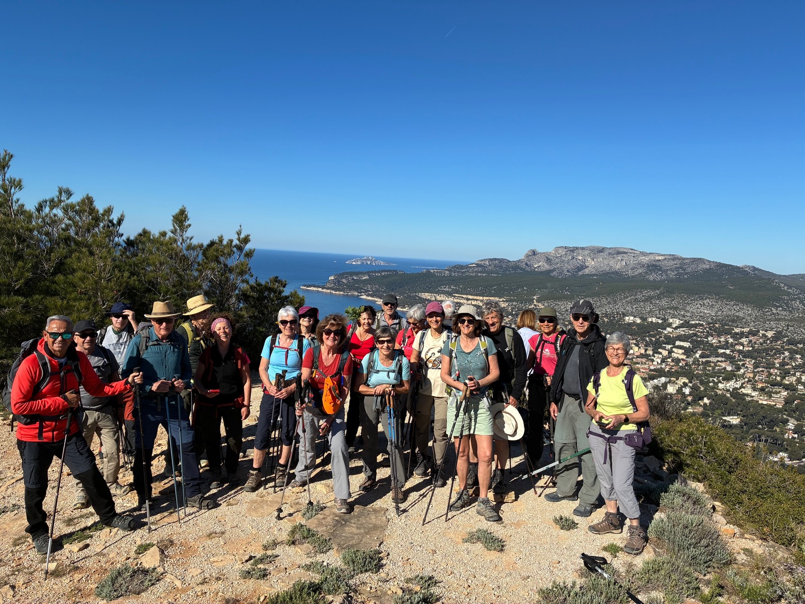 Avec un itinéraire passant par la couronne de Charlemagne, le belvédère des calanques et le cap Canaille ( plus haute falaise d'Europe 399m) mais aussi par un passge un peu sportif T4 , les 23 participants ont été enthousiasmés par des vues exceptionnelles toute la journée sous un soleil radieux