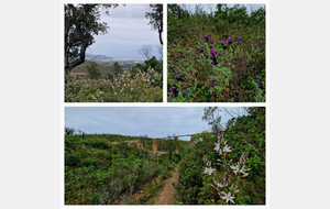 Sous un soleil radieux, notre groupe de 14 randonneurs s’est élancé depuis le Pas de la Griotte, prêt à avaler les 17 kilomètres d’un parcours assez physique. Le début de l'excursion nous a menés vers la fraîcheur du barrage de Tezenas, avant d’attaquer la montée vers les crêtes. De là-haut, l'effort a été récompensé par un panorama magnifique, sur les trois châteaux, la baie et les iles au large.