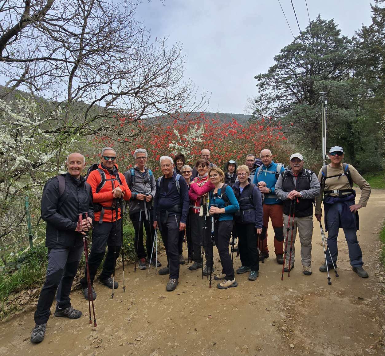 Le départ se donne au parking de la confiserie de Collobrières, où notre groupe de seize randonneurs s'élance à l'assaut des 16 km de sentiers et pistes.