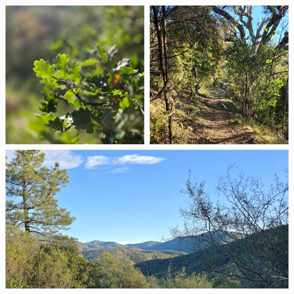 Le départ se donne au parking de la confiserie de Collobrières, où notre groupe de seize randonneurs s'élance à l'assaut des 16 km de sentiers et pistes.
