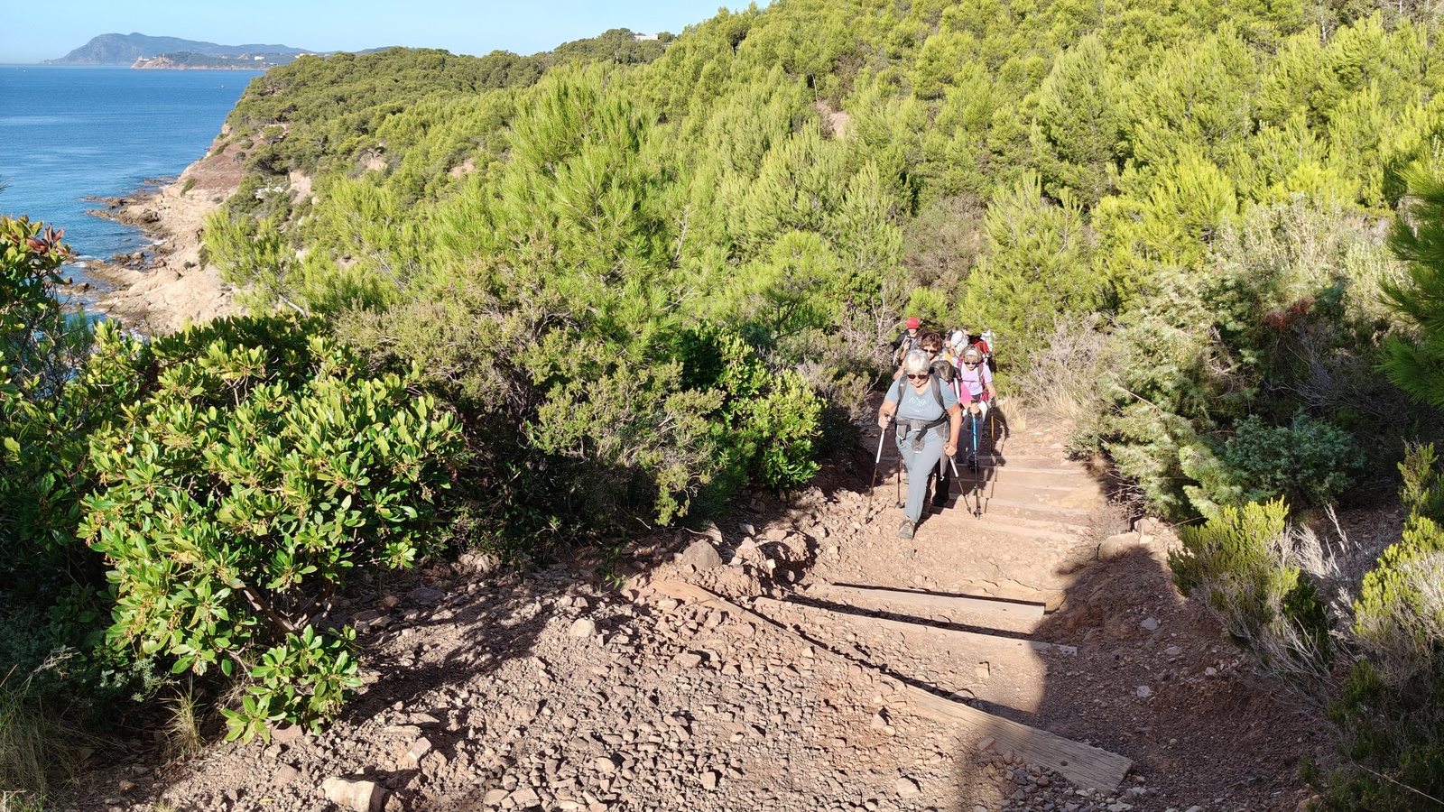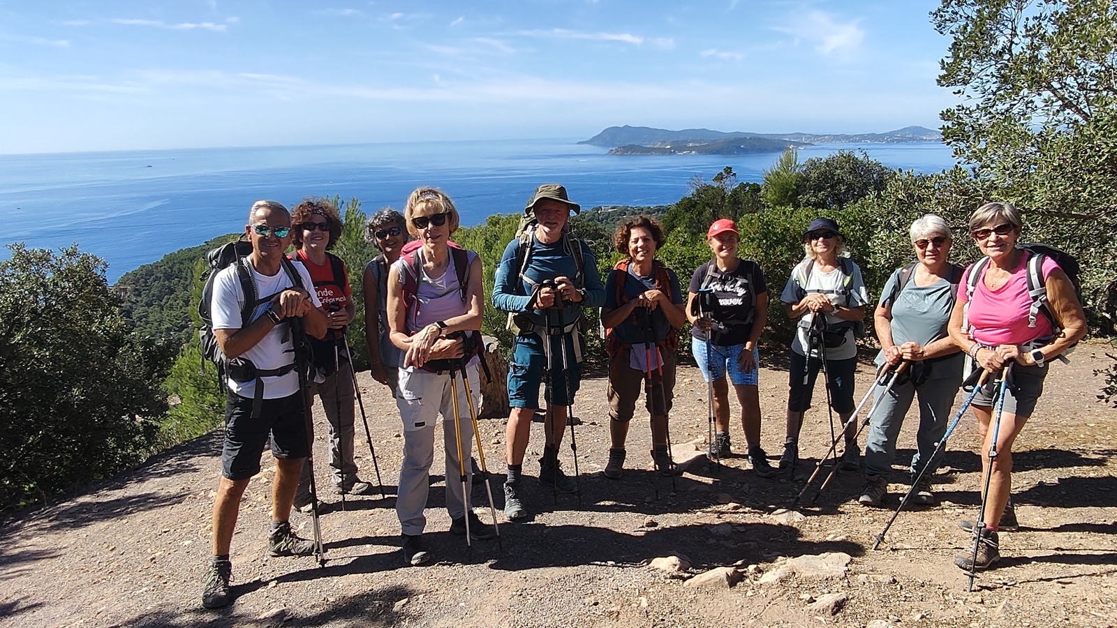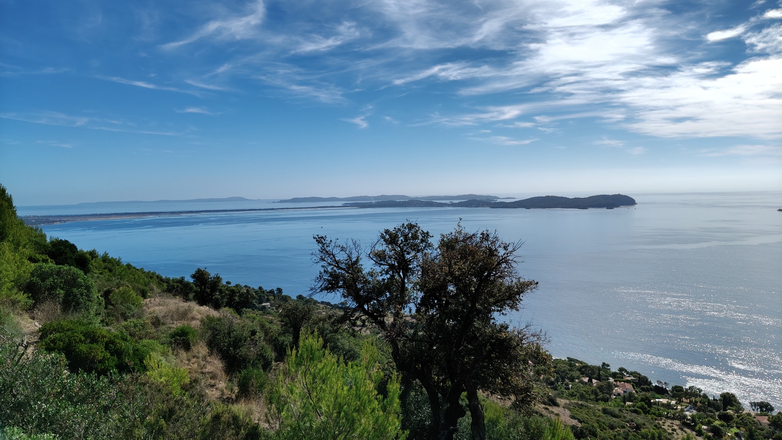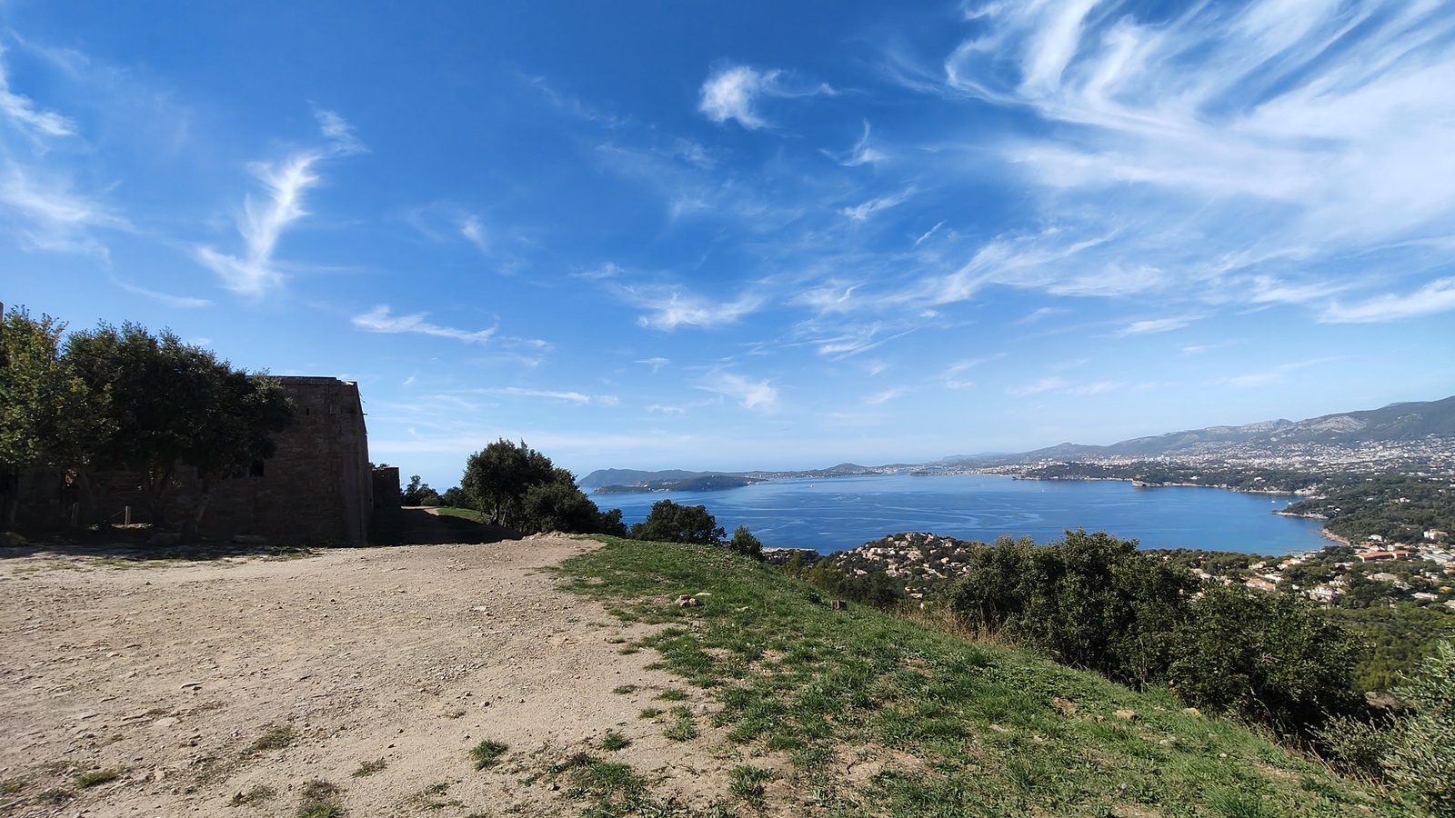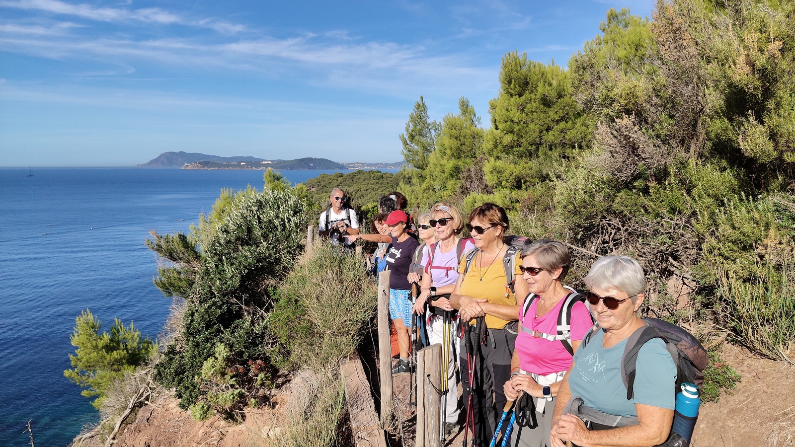 Tout au long du cheminement, des panoramas saisissants autant du coté de la Rade de Toulon, saint Mandrier Cap Sicié à l'Ouest que sur la presqu'ile de Giens, les Iles d'Or à l'Est défileront devant nous, sous un soleil étincelant.